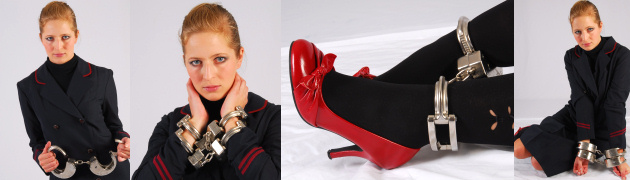 We can’t tell you what airline Anna works for. But we can tell you that two pairs of Clejuso model 15 handcuffs weigh in at just about 3 kilograms (6 lbs). That is a very good workout for a flight attendant’s arms, they have to be in good shape to point out the exits and to hand you your drinks. So next time you are on a plane, just look at your flight attendant and imagine her working out… in Clejuso handcuffs. Guaranteed to make your flight a lot more enjoyable!