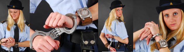 Even in the CuffedInUniform.com holding cells, prisoners are always in full restraints. Belly chain, handcuffs and leg irons. Why? Because we like it. It makes movement much harder for the girls, and we love to see them pacing in their prison, trying to get comfortable on the simple bed, or on the floor. Sometimes they even investigate the padlock on the door. It’s useless, but that’s what boredom does to a fully shackled girl! Young Kylie is no different…