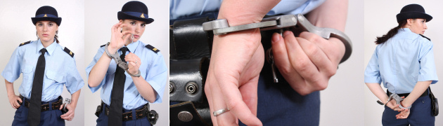Of course you all know her blog CuffGirl.com. One of the most experienced handcuff models in the world, escape artist and very nice girl Chrissy was kind enough to come over and get dressed in a police uniform. She shows us various self cuffing techniques, in front and behind her back, as well as unlocking her own cuffs in all positions. The only way to stop this girl from escaping in taking away the keys!!