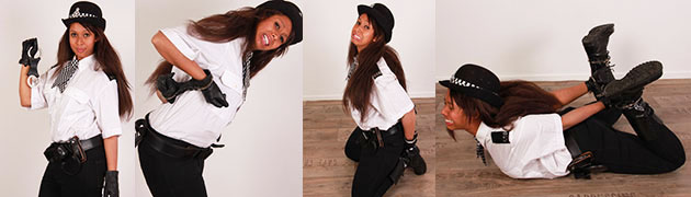 You requested it! Lizzie Bayliss in a British police uniform! Of course, she got herself stuck in the speedcuffs within a few minutes. Girls are just too curious to explore the contents of the police belt they are wearing. And that belt always seems to be missing a key! Oh well, we just like to see her try to get out of those! Lizzie is so cute and gorgeous, we could watch her struggle in a uniform all day!