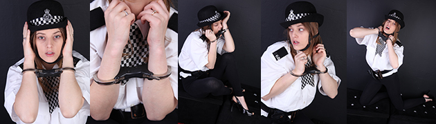 We love cuffing female UK police officers with their own speedcuffs! You would think they should know how to get out of them if they accidentally get stuck! But it usually just results in a sexy struggle, where the WPC is trying to get her wrists out of those rigid cuffs. That doesn’t work of course! Lauren Louise finds out her cuffs are inescapable. Where is the key? Isn’t she supposed to have one?