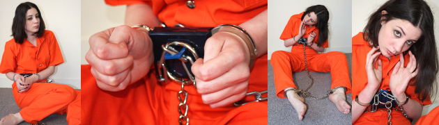 Prison girl Ailish is still in her belly chain and blueboxed handcuffs. She tells us she has an idea of how to escape. We’re very interested to see what she has in mind! She tries to see the padlock on her back, but every time she moves her hands, the chain and the padlock rotate in the opposite direction. Ailish doesn’t give up easily, but in the end she had to admit that she was wrong… there’s no escape!