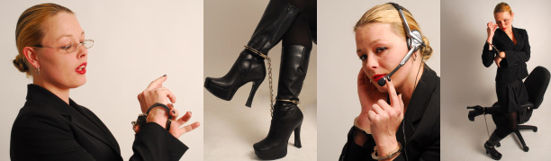 Our office secretary Tachunko always cuffs and shackles herself before taking your calls and answering your emails. It’s in her contract, what else did you expect from us? Tachunko doesn’t mind, she is so used to the restraints she barely notices them anymore.